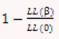 In order to check if the model fits better for the data used, we compute the Goodness of fit tests can be conducted to show how well the model fits the data. To assess the overall fit of the model is possible to compare the model’s Log-likelihood at convergence LL (β) with the model’s Log-likelihood at zero LL (0) which is the model with the constant as the only explanatory variable. In order to check if the model fits better for the data used, we compute ratio index ρ2, which is defined as following: