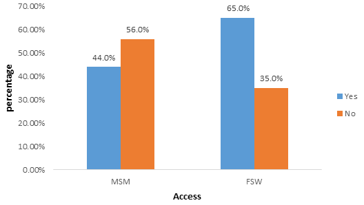 Another limitation was that, this work conducted within the confines of the Bamenda Health District and could not to an extent provide enough results that can be generalized in Cameroon. Because key populations are very mobile, it is necessary that a continuous national research on access be conducted to support the design and implemention national programs targeting key populations.