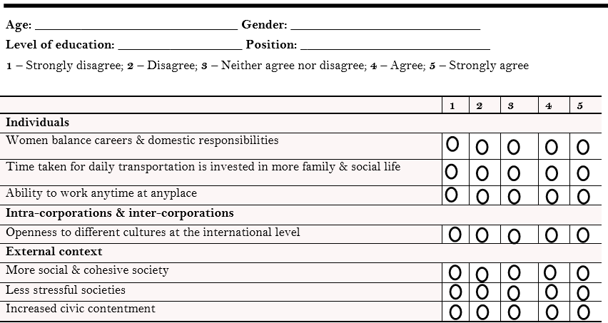 Table 2. The virtual workplace and social sustainable development – individuals.