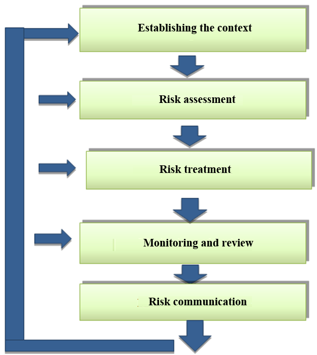 This model includes the following steps: establishing the context, risk assessment, risk treatment, monitoring and review, and finally risk communication. The model is iterative; the different phases follow each other until risk occurrence. Thus, this process must be repeated to deal with each new circumstance.