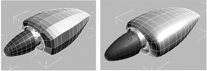 With the approaching to the tail, a grid density increases, keeping constant number of polygons in a section but reducing the distance between tops. The end of the after body is closed by the polygon, then the initial faceted model is smoothed with the use of respective command. The obtained model is not quite a body yet; it is only a workpiece to obtain all the other parts and components thereafter by polygon extruding method (Fig. 7).