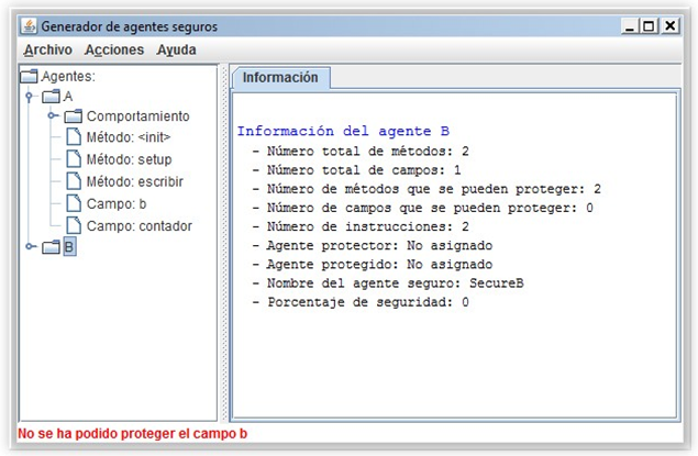 However, we found some limitations using the static component because it does not allow the modification nor creation of new .class files. We notice that this step is essential to achieve our target. For this purpose, we use the dynamic component. This component has ClassGen as the main class of the dynamic component. This provides functionalities for the creation of an empty class. Additionally, we have the possibility to add dynamically components to pack into a “.class” file. Once the tool has been introduced, let us analyze how to digest input files, that is, the set of input agents and the output is the set of classes that represent protected agents using the static strategy.