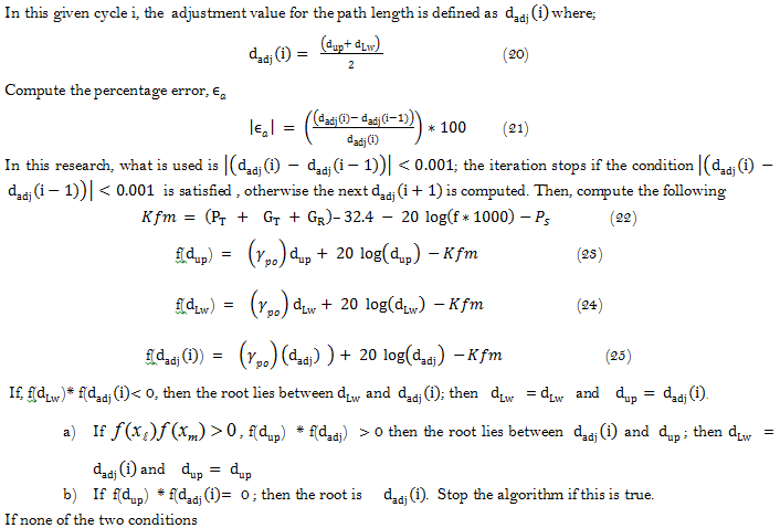 Table-3. Bisection Method: Initial and Optimal Values For Free Space Path Loss, Fade Depth , Fade Margin, Received Power , Differential Fade Depth , Differential Path Length , Path Length and Convergence Cycle