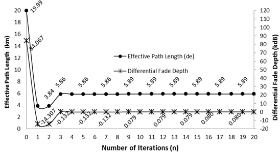 Table-2. Bisection Method:Differential Fade Depth and Effective Path Length vs Number of Iterations