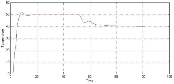 From the Table 1 & 2 it is clear that ISE for the optimized fuzzy is less than ISE for PID and fuzzy without optimization. In simulation, we calculate ISE after a step change. Here the initial value of the step input is kept at 50 and then step change given at time instant of 50. The final value of the step change is 40. This is done because our process is cooling process so we want to settle temperature from high value to low value.