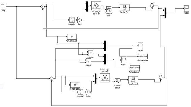 Figure 3 shows the simulation results of a combined fuzzy logic controller. It is experimental from the results of a fuzzy logic controller that, it gives no overshoot, faster settling time, better set point tracking and produces lower performance indices like integral square error (ISE). Figure 4 shows the simulink diagram of a parallel fuzzy logic controller.