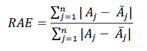 It is the sum of the absolute error divided by sum of absolute relative error. The error is the difference between the actual effort and predicted effort, while the relative error is the difference between the actual effort and its mean. RAE is computed using the following formula: