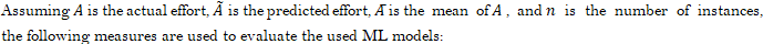 Pospieszny, et al. [2] developed an approach based on machine learning algorithms to limit the gap between recent researches and real implementations. The achieved results for the proposed model were very accurate and authors believe that it gives more realistic results in terms of software effort and duration estimation for practical projects. Furthermore, Pandey [16] did an analysis study on most of the techniques and methods used in software cost estimation. He tried to mention some of the main advantages and drawbacks of each one. He concluded that all project factors are important and critical to evaluate and estimate the cost of a project and they can differ in their important and influence from one project to another. The main factors that should be included in estimation metrics are qualitative: team experience, development environment, and culture; quantitative factors are project size and the available resources. Başkeleş, et al. [17] carried out many experiments on software effort estimation using different machine learning methods based on three main dissimilar datasets. As a conclusion, they have noticed that parametric models are inadequate for software effort estimation process.