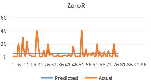 Random forest is a machine learning algorithm constructed on decision tree algorithms. It operates like a group of constructed decision trees that works independently where each tree is using a distinctive part of the dataset. In each tree, it consists of two randomization levels. The first one is called “bagging” or bootstrap of aggregation and the other level is at each node of the decision tree [20]. REPTree is an abbreviation of Reduced Error Pruning Tree. The tree is being built in a fast and learnable way depending on the gained information. REPTree is another kind of decision trees that uses regression tree, which can create many trees in various rounds or iterations. Then, out of all the generated trees, the best one is being selected. To do the pruning process for the tree, the mean square error is measured based on the tree predictions [21]. M5P method is another tree model that is being constructed based on Quinlan’s M5 algorithm. Originally, in addition to adding the linear regression method to the tree leave nodes, M5 model is also based on the conventional decision tree. The trained data is used by the algorithm to form the nodes and represent the decision tree model [22]. The ZeroR algorithm is one of the simplest classifiers. It considers all required potential values and the attributes being targeted. Based on the provided data and using the target attribute, the required output will always be found. This classifier does not have a rule that depends on the untargeted attribute [23].