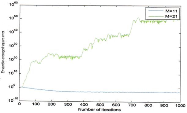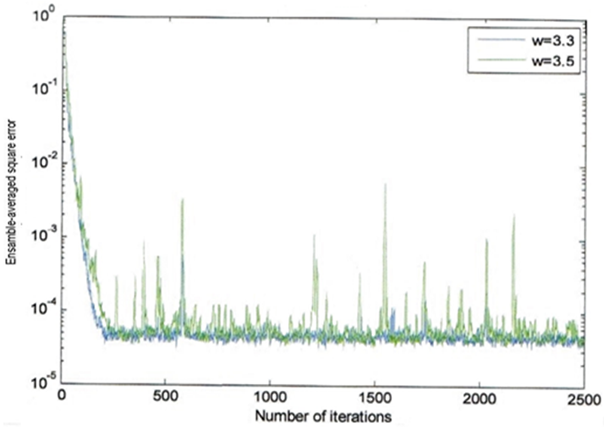 It is clear from the above Figure that as the eigenvalue spread ( χ ) increases, the convergence speed of adaptation process will decrease associated with the increasing of the ensemble-averaged square error. This indicates that the LMS strategy is very sensitive to χ. It is important that the eigenvalue spread ( χ ) is related directly to (w).