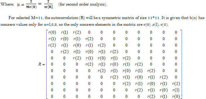 The following table shows the effect of change of the distortion parameter (w) on the elements of autocorrelation matrix (R) and eigenvalue spread.