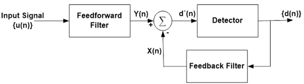 Figure 9 illustrates the block diagram of DFE which comprises two filters. First filter is feed forward ATF that has u(n) as input data and second filter is feedback ATF that has the previous decision {d(n)} as an input . The main purpose of the feedback ATF is to filter out the ISI that is generated by previously detected symbols from the predicted symbols [32]. The following equations describe this methodology:
