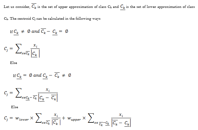 Lingras [20] developed the rough k-means algorithm by hybridizing rough set theory and the k-means technique [20]. It is a heuristic way of depicting each cluster based on the centre of a cluster. To cope with the complexity involved in cluster analysis, the Rough K- means algorithm combines a rough set-theoretic flavor to the traditional k means algorithm. The features of this algorithm are: