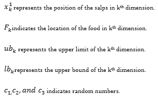 All salps did not determine the location of the target (feed) during the actual iteration. During the iterative process, the fitness values of all the salps are computed, and the salps with the best scoring value are chosen as the current best food position.