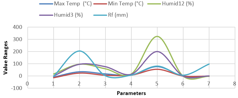 The description of the data gathered and the numerous parameters for all zones of Kashmir province, which are used for rainfall prediction [19-24] are shown in Table 1.