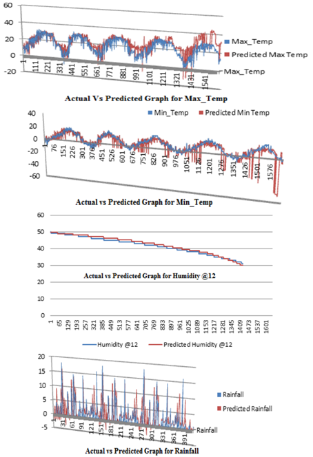 Below are the snapshots in Figure 8 which check the individual attribute actual and predicted values obtained from the M5 model.