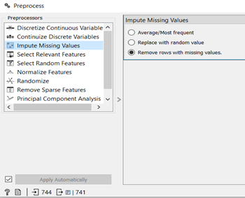 Figure 2. Shows the sub-parameter selected to remove the missing values. |