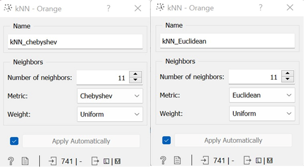 Figure 6. Depicts the subparameter selected for the KNN model with different metrics. |