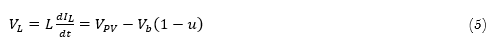 With u as the duty cycle and Vb as the bulk voltage across the capacitor C2, the voltage across the inductor L is given by: