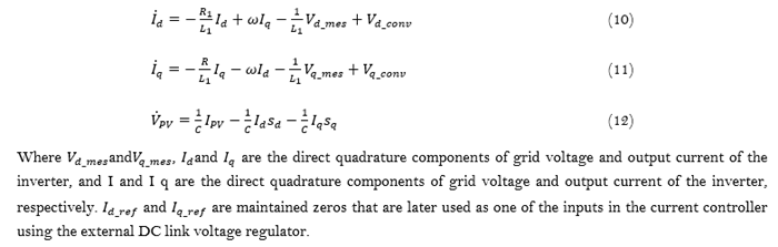 For VSI state space equations [11] applying dq transformation in synchronous frame can change them as illustrated below in the Figure 5.
