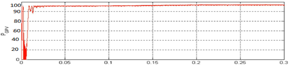 The dynamic performance of PV power, PV voltage, duty cycle, and grid-level power is shown in Figure 9. To begin, the suggested PV system was simulated under homogeneous light, which corresponded to normal circumstances of 1000 W/m2 and 25 degrees Celsius. According to Figure 9 and Table 4, the IC approach had the poorest statistical parameters, and its dynamic behavior was marked by substantial ripples, which had a detrimental impact on PV system operation. The FL had the quickest response time and accurately tracked illumination variations. The PSO approach had a 99.35 percent effectiveness rate. Figure 10 indicates that the simulation results suggest that the PSO is superior to the others. Simulations show that the algorithms FL, VSI and PSO can track changes in illumination and temperature to achieve the MPP. Figure 11 illustratesdynamic response of PSO algorithm control in grid-connected PV System and shows that PSO outperforms them especially during the night and/or in partial shaded areas during the day. Undesirable ripples in Figure 12 and Figure 13 appear in the IC's and VSI’s dynamic reaction, which is a dangerous disadvantage for the PV system.