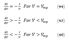 The voltage that corresponds to the MPP is called Vmp. If Equation 43 holds, the PV system has reached the MPP and no adjustment in the operating voltage is required; otherwise, the operating voltage is adjusted as needed.