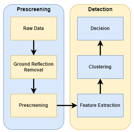 After comparing the prescreening and clustering algorithms, the flow of the proposed algorithms we used for cluster wire and clutter is shown in Figure 16.