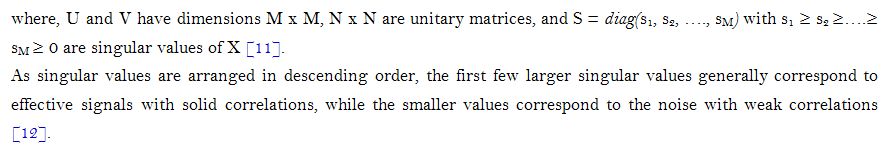 SVD-based image enhancement is well studied in the literature. It is performed by decomposing B-scan image X (with dimensions M x N) into different spectral components using SVD, i.e.,
