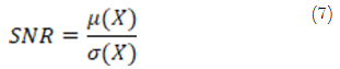 The signal-to-noise ratio (SNR) is a conventional method used in image processing. The SNR of an image can be measured as the ratio of the average signal (M) to the standard deviation of the noise (N) [20]. Using the image's standard deviation, the image's background and foreground do not need to be detected and processed.