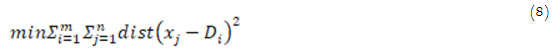 The distances between m centroids Di (i=1,2,…..,m) and the n feature samples xj (j=1,2,…..,n) are minimized as follows [21]: