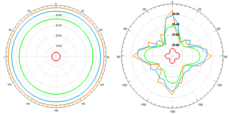 Table 2. Phi degree versus monostatic radar cross section values(dBm) for 3 different antenna types.