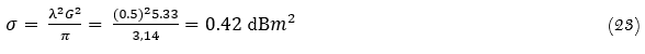 The radar cross section formula of antenna for the maximum gain=2.53,