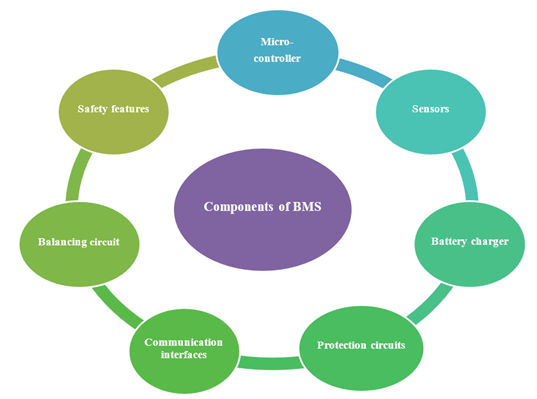 Each of a BMS’ several different components plays a critical role in monitoring and controlling the performance of a rechargeable battery. The following are some of the most important components of a BMS, as illustrated in Figure 2 [9]: