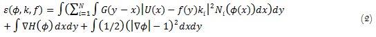 Thus, the energy function of the LSBF model is then defined by the following Equation 2: