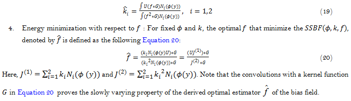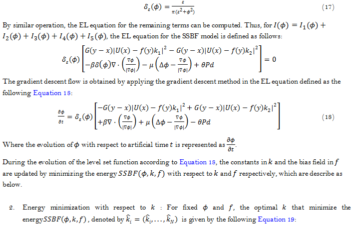 Where  is a constant and represented as vector k  and is the bias field. The Equation 2 is minimized iteratively using a gradient descent approach.  The LSBF was invented for segmenting whole objects, which is inapplicable in the case of selective segmentation.
