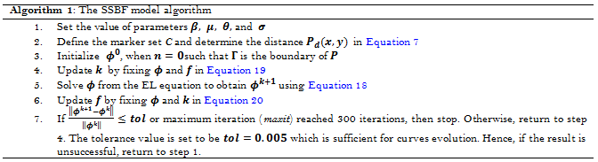 The implementation of our proposed model is summarized in Algorithm 1. This algorithm shows the steps involved to implement the SSBF model to compute the solution using MATLAB software.