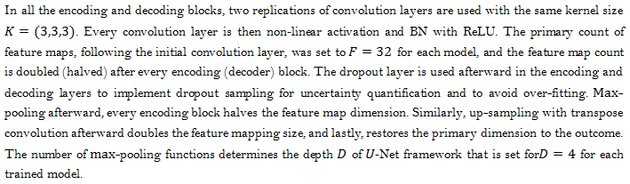 The bottleneck blocks restrict data flow from the encoding to decoding block and comprise 2 convolution layers, each afterward rectified by linear activation and batch normalization. Unlike the encoding and decoding blocks, we don’t apply a dropout layer to the bottleneck block. Due to memory limitations, the input brain volume is typically 2 million voxels in size, evenly dispersed across the imaging dimension. Then, train the network with the help of the Adam optimization using primary learning rates of 0.001. In the process of training, a set of random transformations is applied, for example, rotations and translations, to the volume for data augmentation.