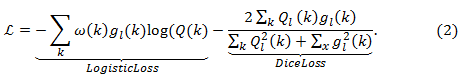 Now,  indicates the softmax outcome of networks at voxel location    denotes the ground truth at a similar location. Theoretically, the impact of Dice loss and cross‐entropy is further weighted, however, it is found small impact on performance and thereby neglect further weighting.
