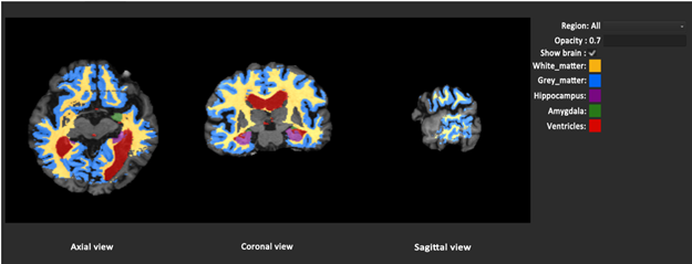 In this work, the Quick NAT model is exploited for the active brain MRI segmentation process, which recognizes various regions. Quick NAT [18] includes three 2D FCNN architectures, which segment the input image slice-wise alongside axial, sagittal, and coronal axes. After that, the view aggregation phase takes place, where the three segmentations generated are integrated to provide a concluding segmentation.