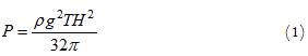 where P is wave power per unit [kw / m], is the density of sea water per unit [kg / m3], g is acceleration of gravity at the unit [m / s2], T is wave period in units [8] and H is unit height in [m] wave breasts that are the highest point to the lowest point in the waveform.