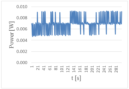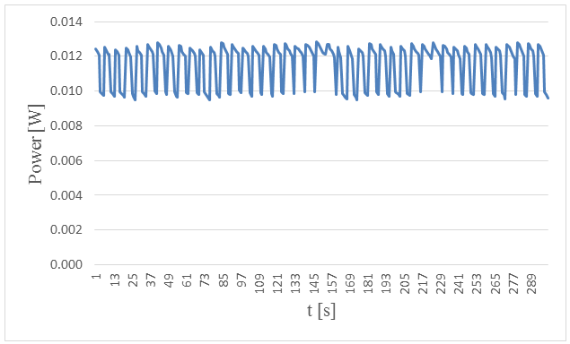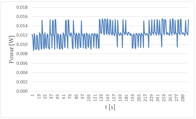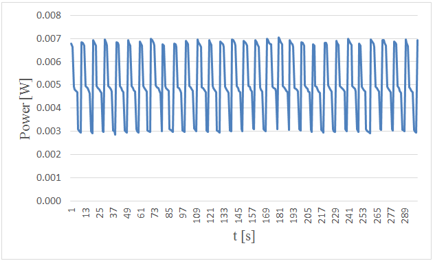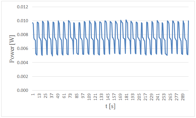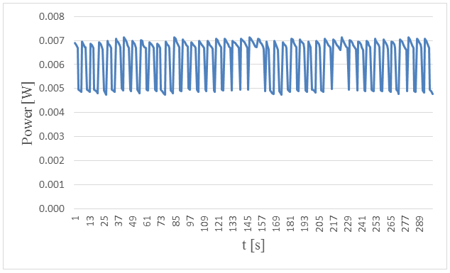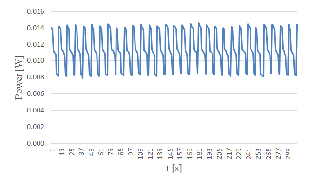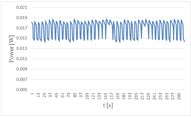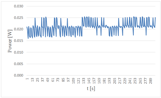 Figure-3. Measured power versus time in 5. centimeters wave height and period of 5 seconds