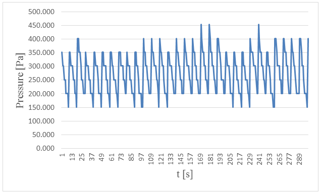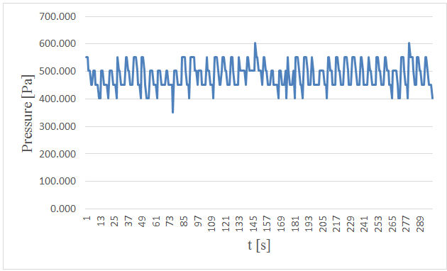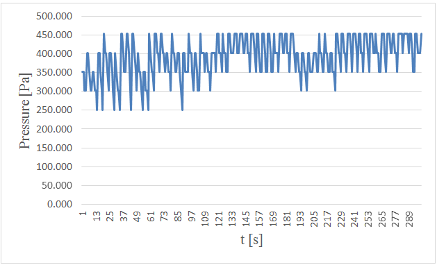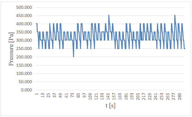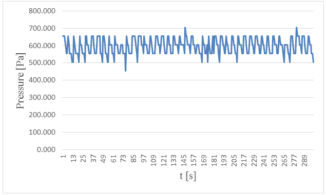 Figure-15. Measured pressure at the bottom versus time in 5 centimeters wave height and period of 7 seconds.