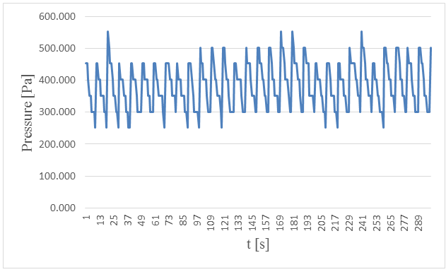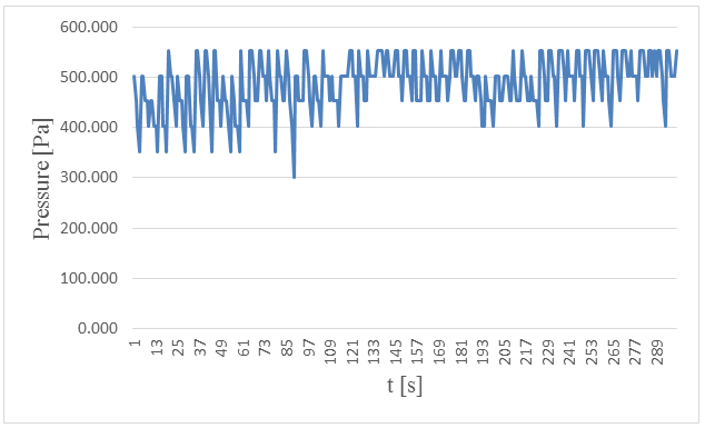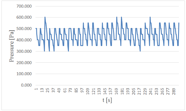 Figure-12. Measured pressure at the bottom versus time in 5. centimeters wave height and period of 5 seconds.