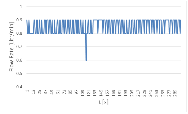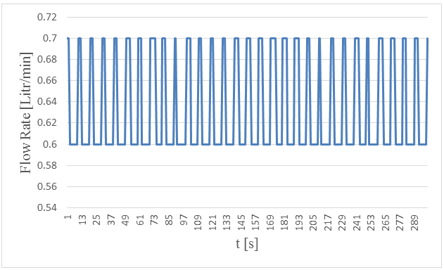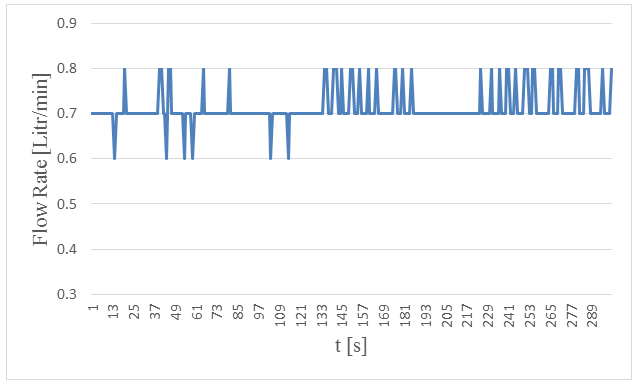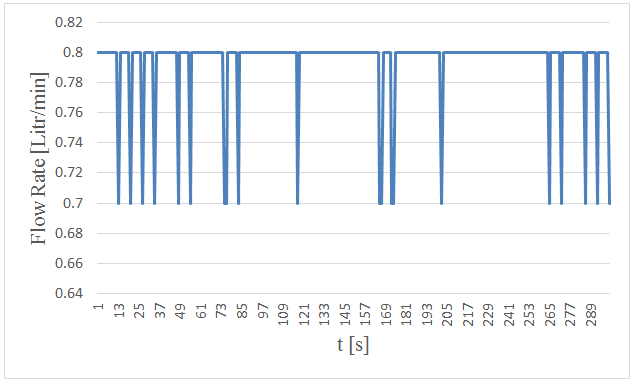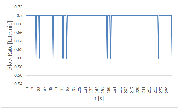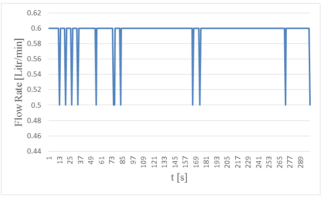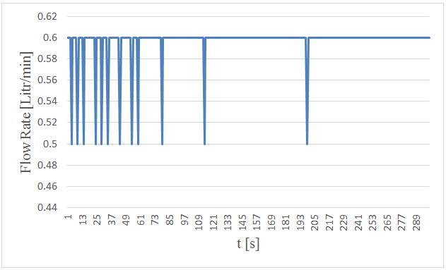 Figure-21. Measured flow rates versus time in 5. centimeters wave height and period of 5 seconds.