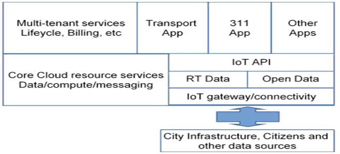 The IOT design, implementation and use it in Smart Cities is integrated approach and a complex one also, and it depends on various research issues ranging from sensor networks to open-data portals. Some of the examples are the use of sensor in traffic applications such as magnetic sensors and other scanners to implement and assist the traffic operators [6]. Experiments like real-time monitoring of critical infrastructure such as the urban water supply [7] to buildings allows smart-grid to interactively manage energy use for the city [8]. This integration and deployment with the traditional infrastructure sensing is the main goal of cloud and even with the help of social networks [9, 10] and mobile phones [11, 12].The advanced use and available data stream technologies with the centric approach will fetch additional solutions and address the drawbacks of the urban sub-systems. So the need is data exchange and availability gives huge handling and hence the integration of smart city systems with available technology and it requires open innovative platform to accommodate the above systems on a large scale networks[13]. So this paper explores the use of cloud based technologies as the basis for open platforms [14, 15].