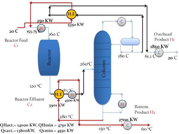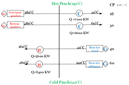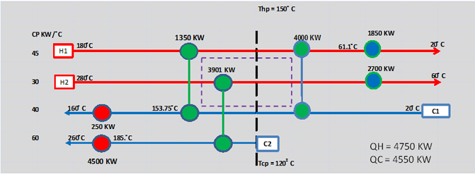 Pinch technology technique is an effective method for maximizing the process of energy management through designing HEN; it depends on the exchange between energy sources and energy sinks of the process. Where, after classification the process into streams with its thermal and physical properties, estimation of minimum utilities and defining pinch point take place. Many alternatives HEN designs are realized by using pinch instructions: [1, 3, 4].