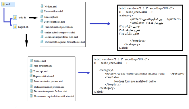 We have designed a web based chatbot that is capable to chat in both Urdu and English languages. The knowledge base of this chatbot has been designed using AIML. The architecture of typing based chatbot is shown in Figure 1. This chatbot functions in the specific domain of examination department of MUET. It is developed and coded using python programing language together with Pyaiml, flask framework, html, cascading style sheets (CSS), jQuery, JavaScript and bootstrap.