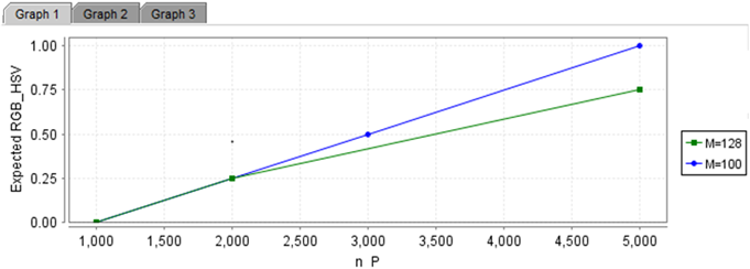 The first property is based on the reward which states the expected RGB_HSV model conversion concerning the probability of the number of pixel input. The intensity value of M is varied from 100 to 128.The x-axis in Figure 2 shows the number of pixels and the y-axis represents the expected probability of RGB to HSV conversion. It also depicts that probability increases with the increase in the number of pixels.