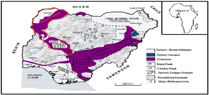 Figure-2. Geological map of Nigeria showing the Mid-Niger Basin, modified after [46]