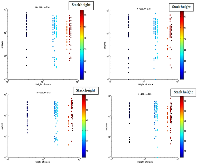 NDVI450-60)mN against flare stack height